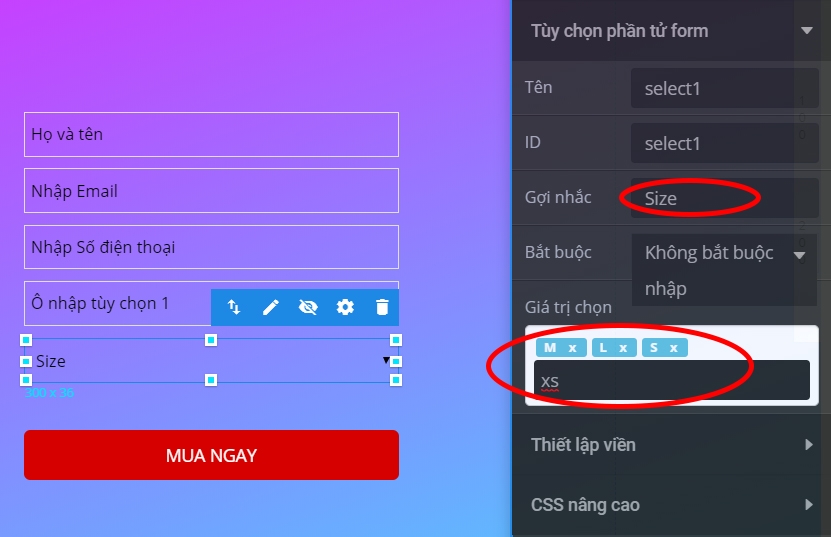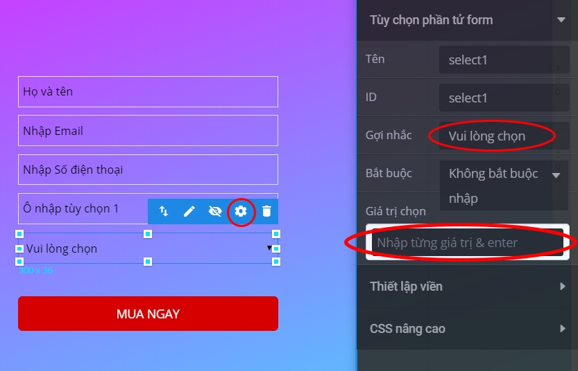 Thêm tùy chọn cho form