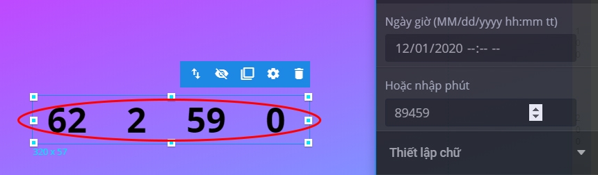 Bạn có thể thêm nhãn Ngày / Giờ / Phút / Giây bằng cách thêm phần tử text, thay đổi kích thước màu sắc cho phù hợp và di chuyển đến vị trí tương ứng.