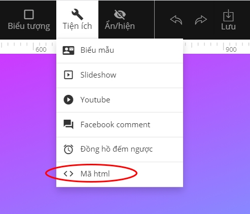 1. Bạn vào phần Tiện ích ở thanh công cụ bên trên và chọn mã HTML
