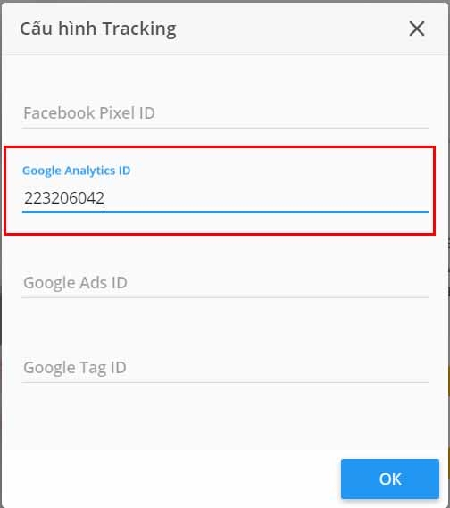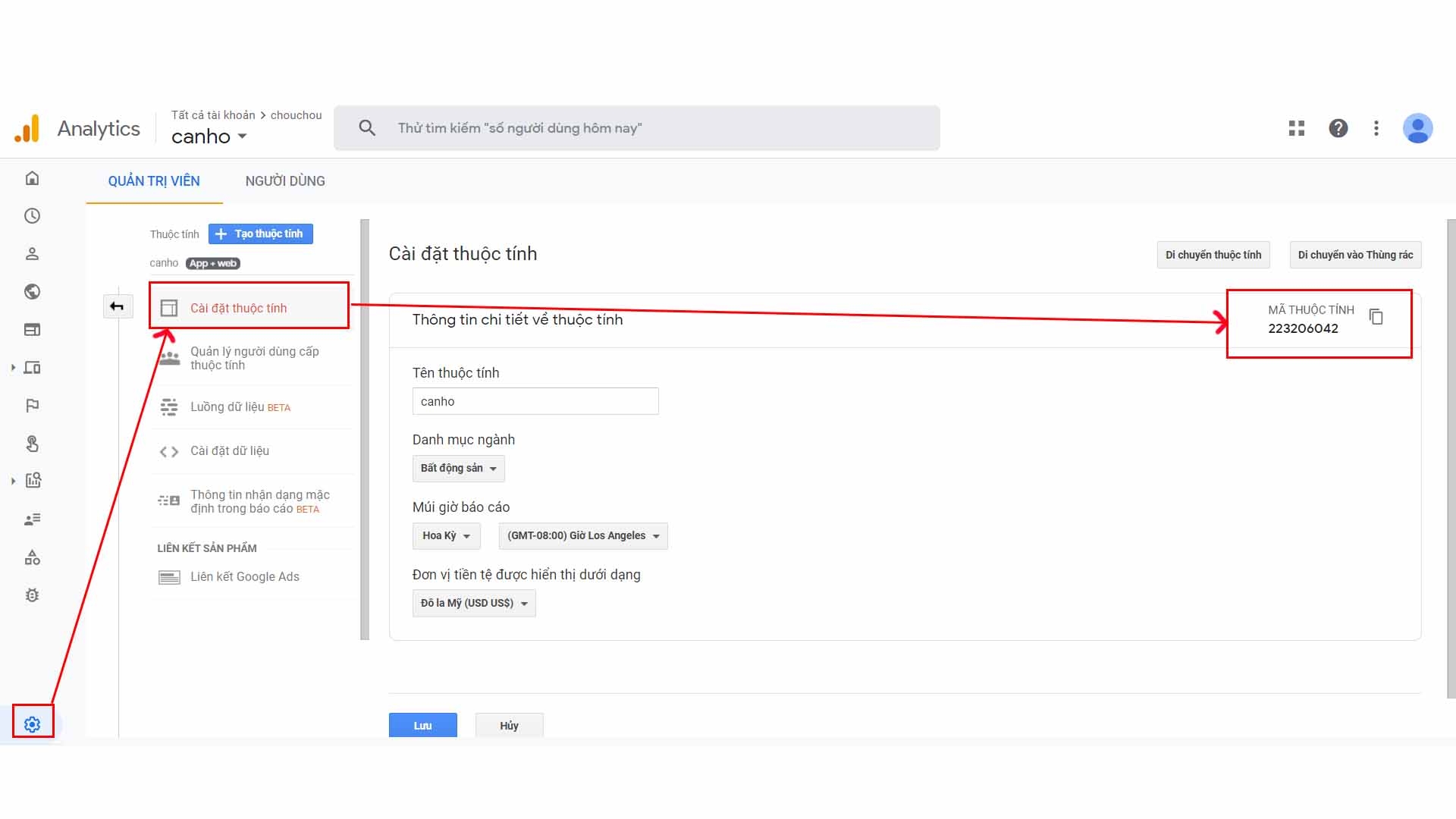 Lấy mã ID theo dõi trong phần Admin -> Cài đặt thuộc tính: