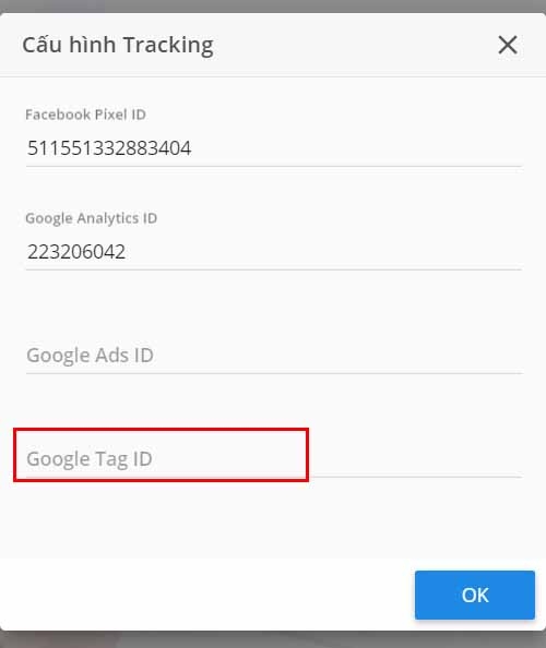 Vào phần cài đặt, tracking và dán mã ID vào
